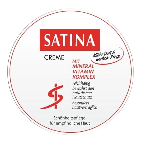German Quality Skin Satina Cream: Satina Creme is a rich, ointment-like cream with a strong protective effect on the skin. It is pH-neutral and extremely gentle on the skin. Thanks to its rich composition, the cream is particularly suitable for the body (dry areas), but also for dry facial skin. The white cream has a fine, slightly medicinal scent and does not contain any colorings or preservatives. Satina Cream has rich and nourishing active ingredients, such as calcium and provitamin B5 (panthenol), which in combination help to restore the skin’s natural moisture content. The skin becomes more resilient and is better protected against harmful external influences. Satina Creme is gentle and enveloping. It offers intensive protection and care for even the most sensitive skin and ensures that it becomes supple again and feels as smooth as satin. For dry, delicate facial skin and other body parts. Dermatologically tested.
