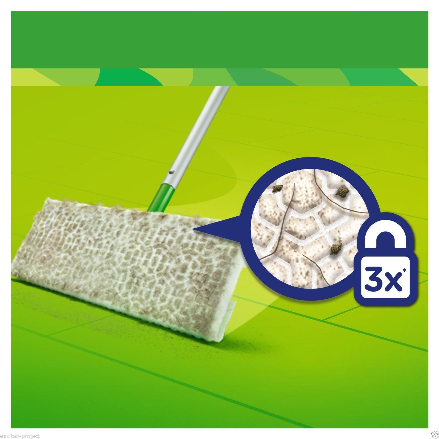 The Swiffer floor mop picks up dust, dirt and hair from all floors and surfaces in your home and includes these, and much more thoroughly than a conventional broom. The thick bottom-dusters to the surface of your floors and joints fit and so take dirt, dust and hair better and close it more thoroughly than a broom a. Thanks to its density, its specific surface structure and their electrostatic effect take the floor Dusters 3 times more dust and hair on and close it thorough a than a traditional broom. Thanks to its 360 ° -rotation head. You can swipe your Swiffer floor mop everywhere, even in hard to reach places, such as under the refrigerator, the stove and the dishwasher and even in nooks and crannies where you do not approach with a broom or mop. With the Swiffer floor-dusters you can clean up in no time. They are ideal for picking up pet hair, lose our favorites ever, and are very convenient for house dust mite allergy. The Swiffer mops you can use on all hard surfaces, such as waxed or unwaxed linoleum, vinyl, ceramic and treated wooden floors.